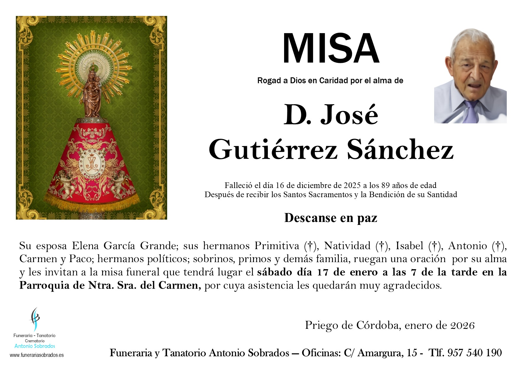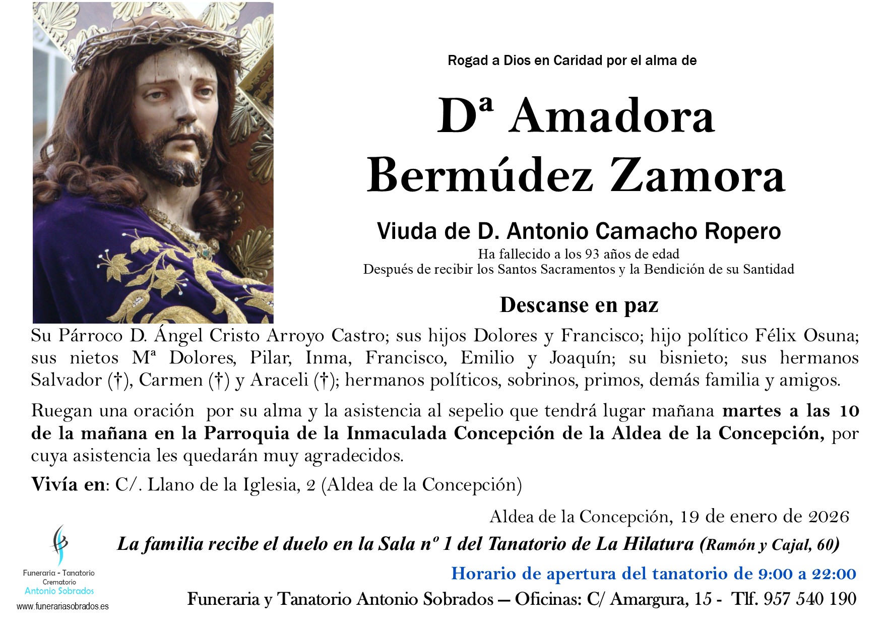 Falleció el Lunes 19 enero de 2026