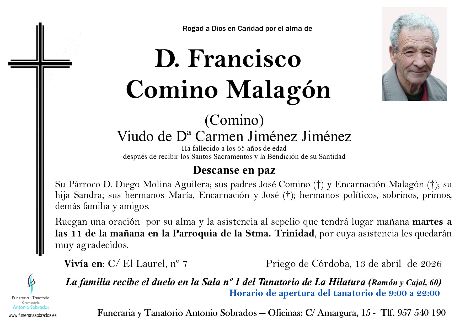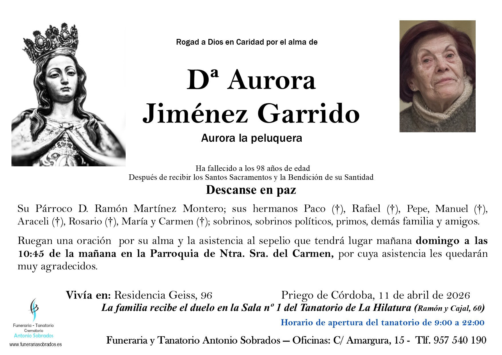 Funeraria, Tanatorio, Crematorio Antonio Sobrados