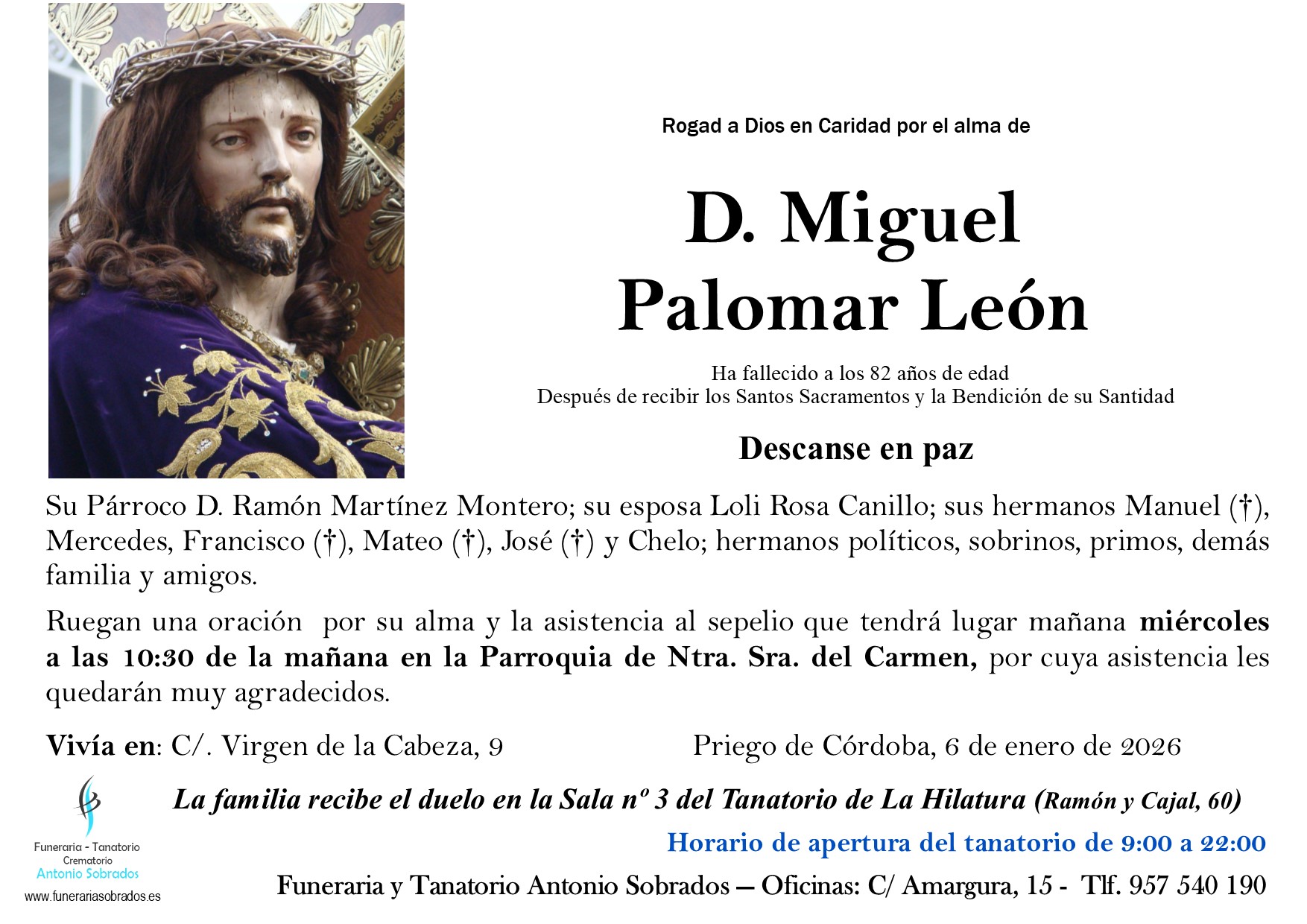 Falleció el Martes 6 enero de 2026