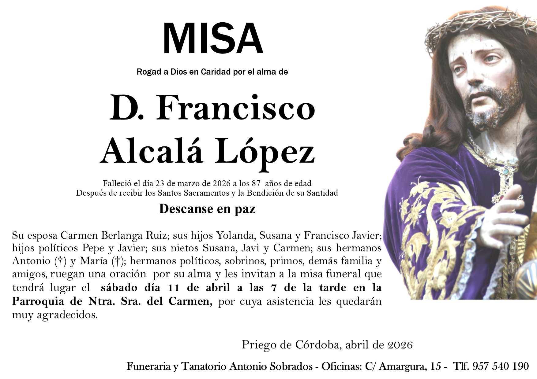 Falleció el Jueves 2 abril de 2026