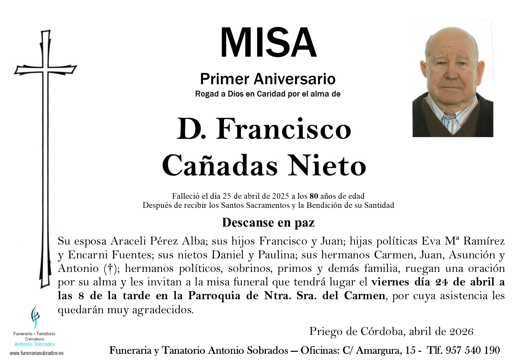 Falleció el Viernes 25 abril de 2025