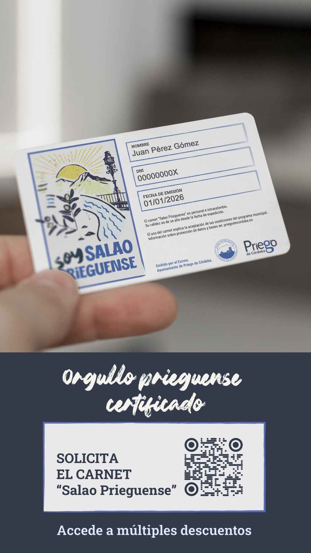 La campaña también vincula el “carné de prieguense salao” —en formato digital y físico— a distintas ventajas, como entrada gratuita a monumentos municipales (acreditada con el carné), descuentos puntuales para eventos culturales e instalaciones deportivas, y transporte urbano gratuito para mayores de 65 años empadronados. El carné se solicitará mediante formulario y se podrá retirar, entre otros puntos, en la futura oficina de turismo prevista en la calle Río.