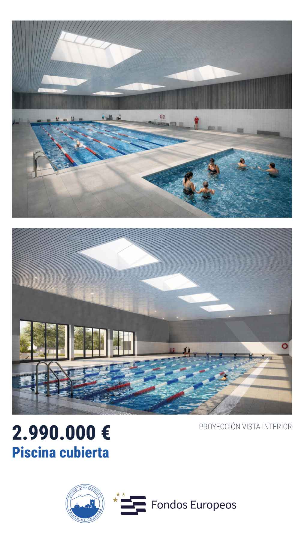 El proyecto incorpora además importantes mejoras técnicas, como nuevos vestuarios independientes, sistemas de eficiencia energética, climatización avanzada con recuperadores de calor y un moderno sistema de deshumectación. También incluirá un sistema de depuración completamente renovado y soluciones constructivas que facilitan el mantenimiento y reducen riesgos estructurales.