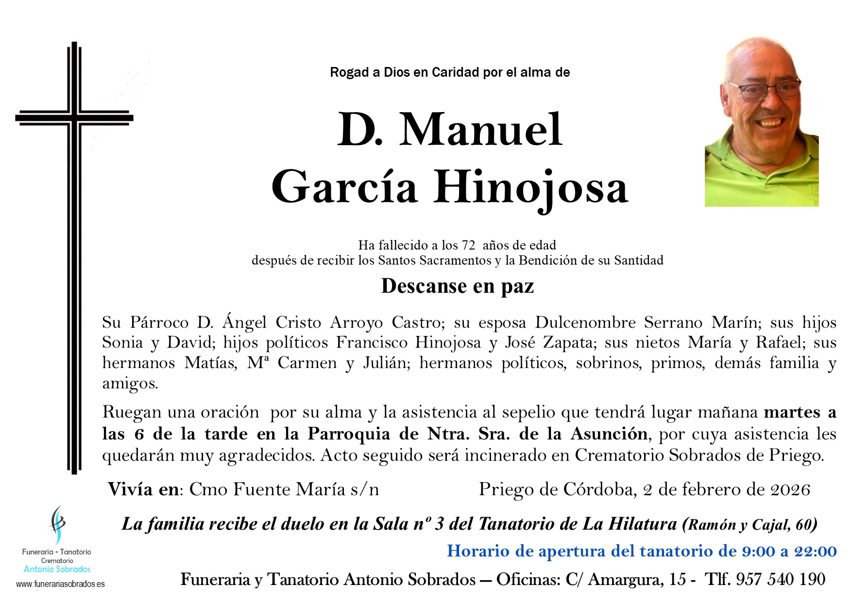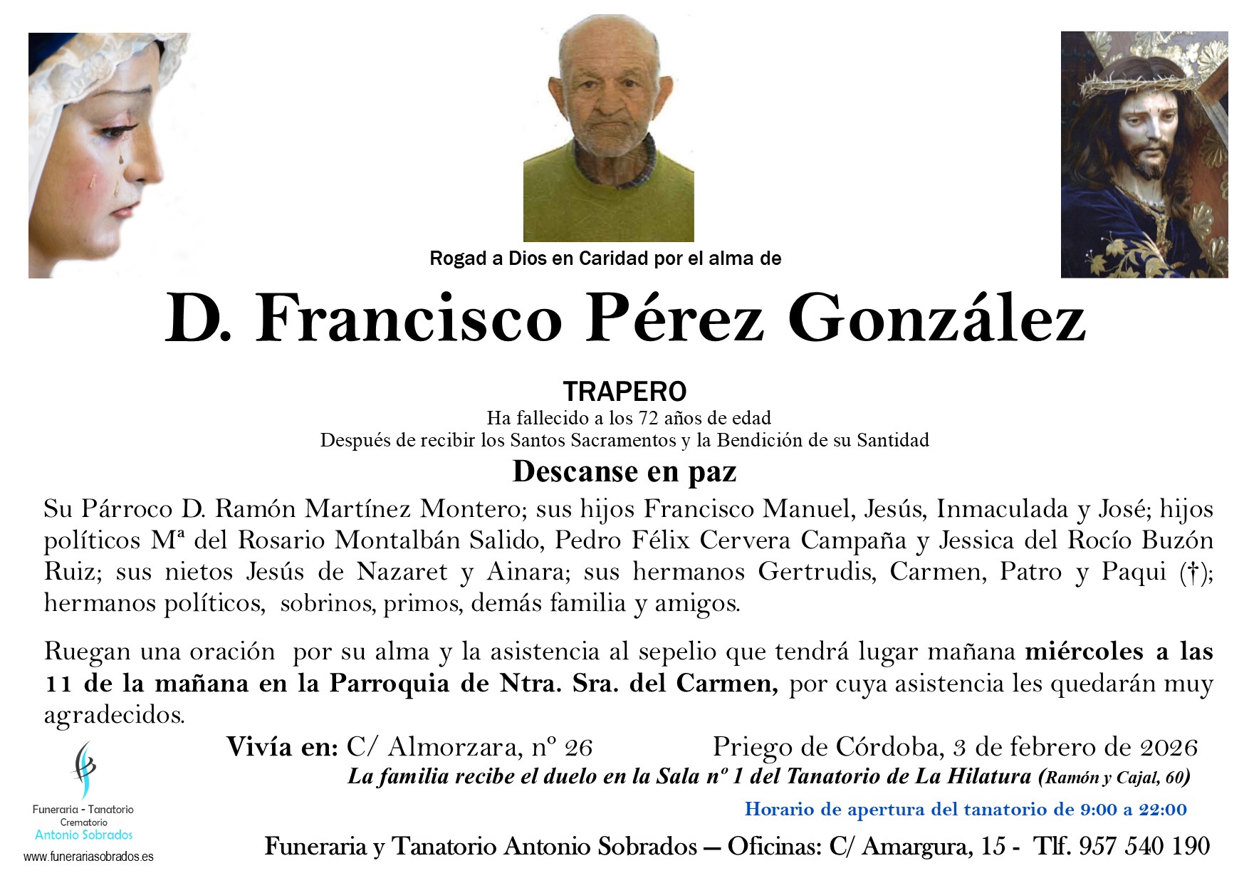 Sepelio el Martes 3 febrero, 6 de la tarde