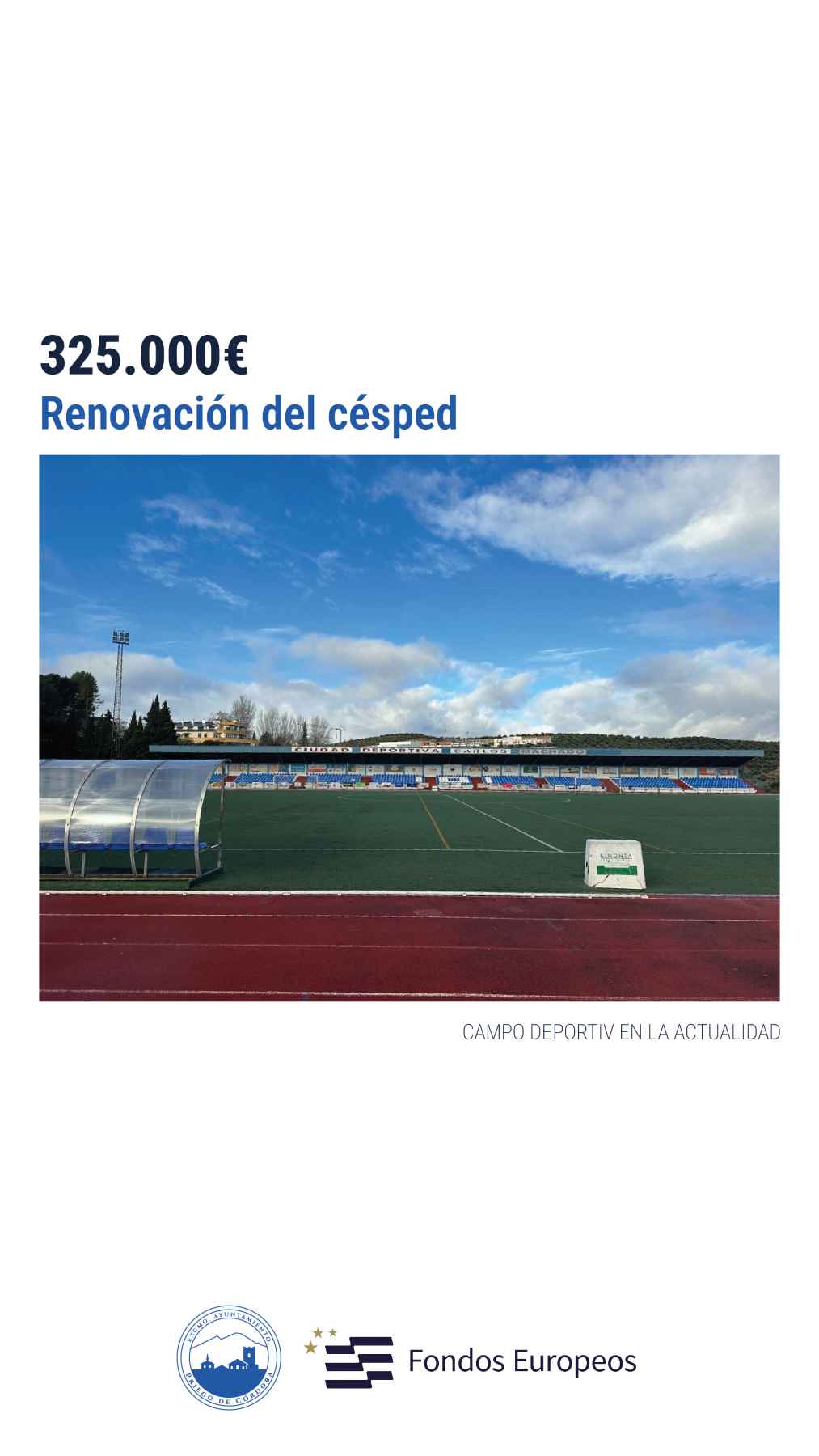 A esta actuación se suma la sustitución del césped del campo de fútbol de la ciudad deportiva, que será de máxima calidad y homologable para competiciones de Primera Federación, mejorando notablemente las condiciones de juego.